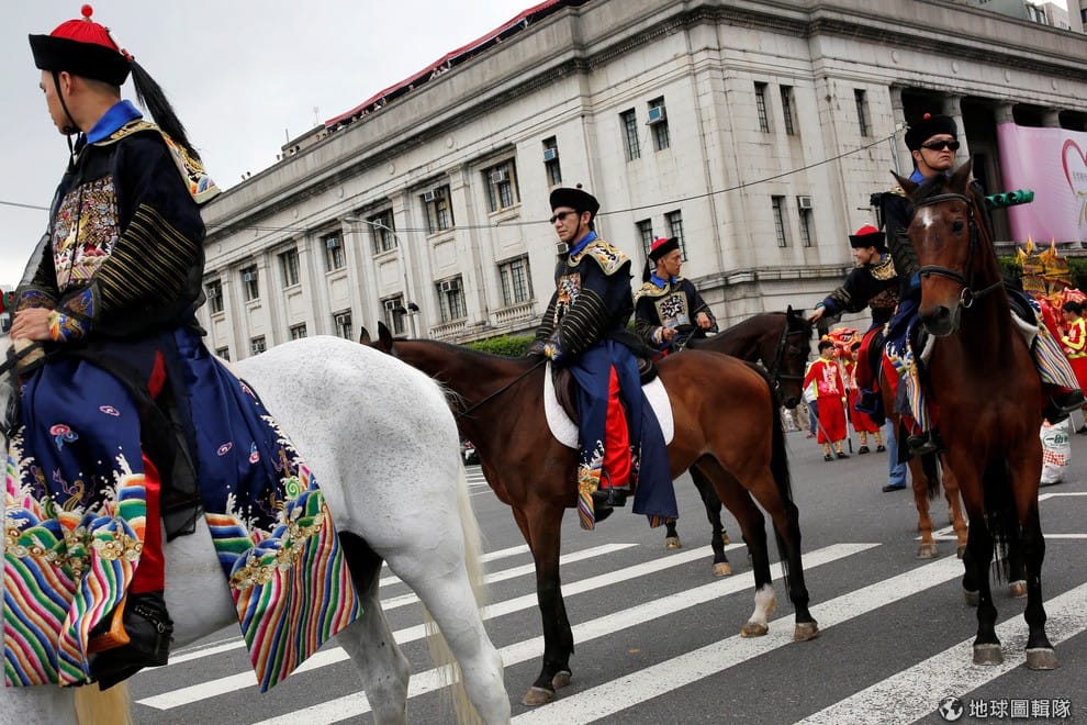總統就職典禮彩排現場,表演者穿著清朝服裝進行彩排。新總統蔡英文在 5月20日上任,《路透社》指出,蔡英文在上任後將面對亞洲最艱困的工作之一,她要思考如何在中國的文攻武嚇下,一方面保持兩岸的經濟交流同時也要維護住台灣人民的權利。