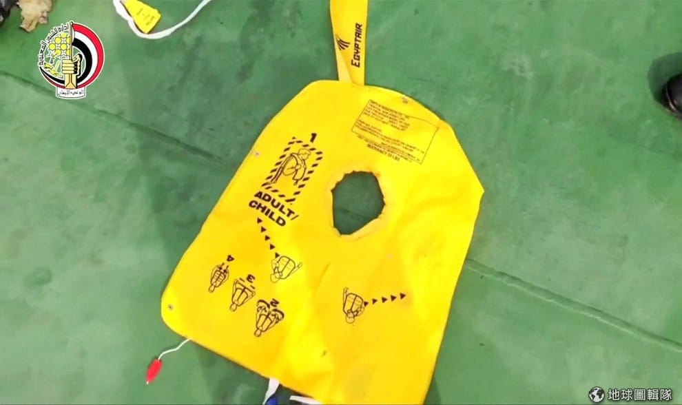 一件黃色的救生衣躺在船上,連著其他機骸一起被打撈上岸,它們都來自 19號失事的埃及航空MS804班機。19號深夜,埃及航空MS804班機從巴黎飛往埃及途中失事,墜落地中海,機上 66人全數罹難,目前失事原因推測與機身在飛行中起火有關,埃及已出動潛艇尋找俗稱「黑盒子」的飛航記錄器,希望能還原事發經過。