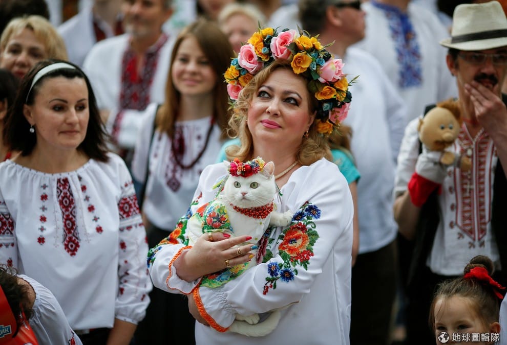28號這天,烏克蘭首都基輔的大街上出現了一群穿著傳統刺繡服的民眾,他們身上的刺繡服是烏克蘭重要的藝術,通常以白色襯衣為主,隨後繡上五顏六色的花朵或圖騰,每一件都蘊含豐富的歷史和文化。