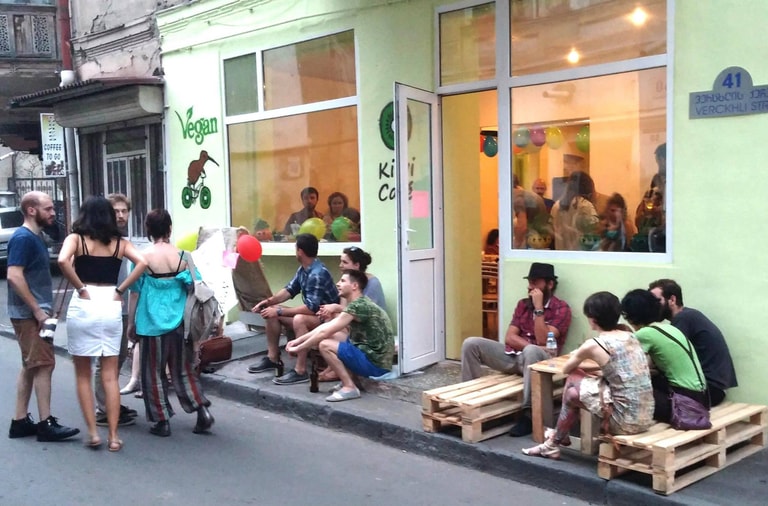 攻擊地點在喬治亞首都提比里斯(Tbilisi)的奇異咖啡館(Kiwi Café),這間咖啡館廣受不少外國人喜愛。目擊者表示,事發當時十幾個男人帶著烤肉串衝進店內,用烤肉、烤香腸還有烤魚丟客人,他們之間有的人脖子上還掛了一串香腸,奇異咖啡館稱他們是反素食的「極端分子」。