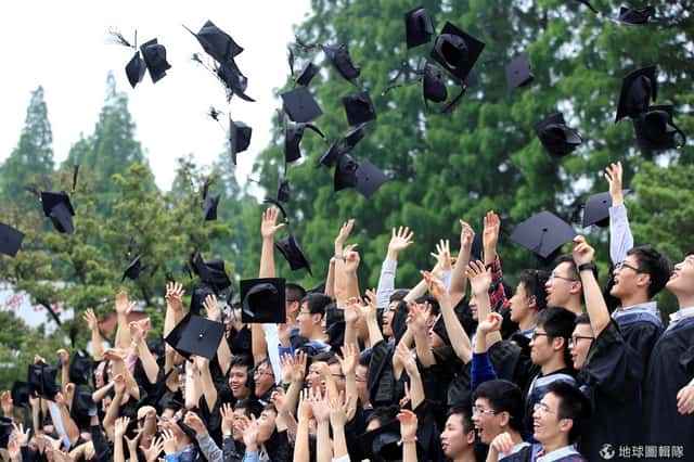 首圖故事:上海大學生一起將學士帽往天空拋...