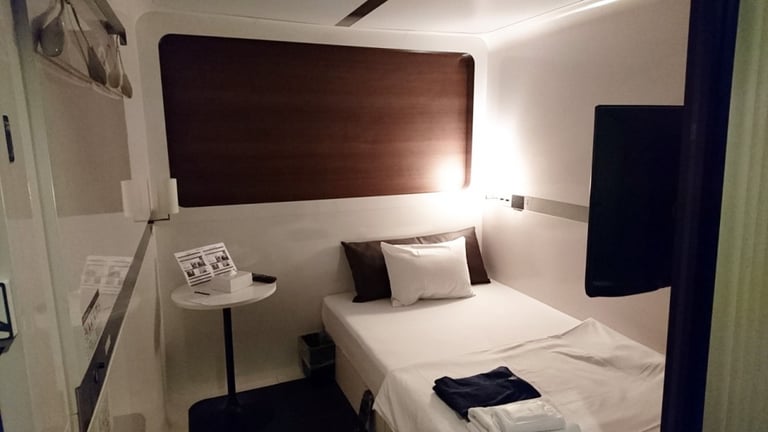 舉例而言,你搭深夜 LLC 抵達羽田國際線航廈後,大多數的人有兩種選擇:搭深夜巴士前往都心或去附近的旅館(例如很多人推薦的台場大江戶溫泉,但沒事先預約的話要碰運氣),或是睡機場到天亮。如果你要利用膠囊旅館,你就必須叫計程車到國內線第一航廈。短短兩個航廈間的移動,深夜的計程車費用大概需要 2000 日幣;同樣地,當你要搭清晨的羽田飛機回臺灣時,假設你先住了 First Cabin ,同樣面對要如何從第一航廈抵達國際線航廈的問題,這點請務必多加考慮。