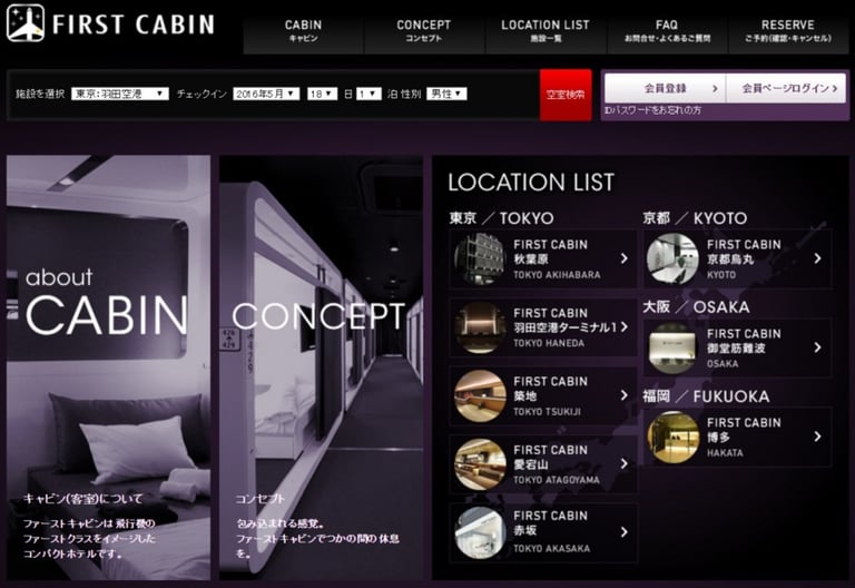 筆者因為講學和工作關係,最近平均一個月會前往日本一次,大多有對口單位安排住宿,不過有時候想要多留幾天就需自己處理,這次最後一天跑去住了號稱五星級的膠囊旅館「First Cabin」。顧名思義,這家膠囊旅館最初是以飛機艙等為發想的旅館,隨著知名度打開成為連鎖型旅館,目前包含東京(包含羽田機場、秋葉原、愛宕山、築地、赤坂)、大阪(御堂筋難波)、京都(京都烏丸)和福岡(博多)均有設店。