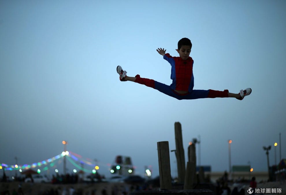 12歲的施克(Mohamad al-Sheikh)正在攝影師眼前做出各種體操姿勢,他在當地被人暱稱為「蜘蛛人」,施克希望自己能用驚人的彎曲姿勢打破世界紀錄。