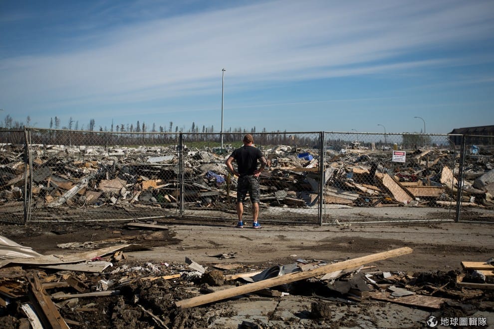 5月初時,加拿大中部艾伯塔省(Alberta)的麥克默里堡(Fort McMurray)遭遇森林大火,影響面積大約 850平方公里,相當於三個台北市(註:台北市面積大約 271.8平方公里),當時超過 88,000名居民必須撤離,超過 1,600棟建物被火舌吞噬,熊熊大火仍不斷蔓延,甚至威脅到避難中心。