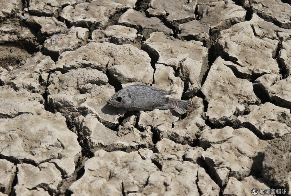 拉賈斯坦邦一處乾涸的湖泊,死魚躺在龜裂的河床上。