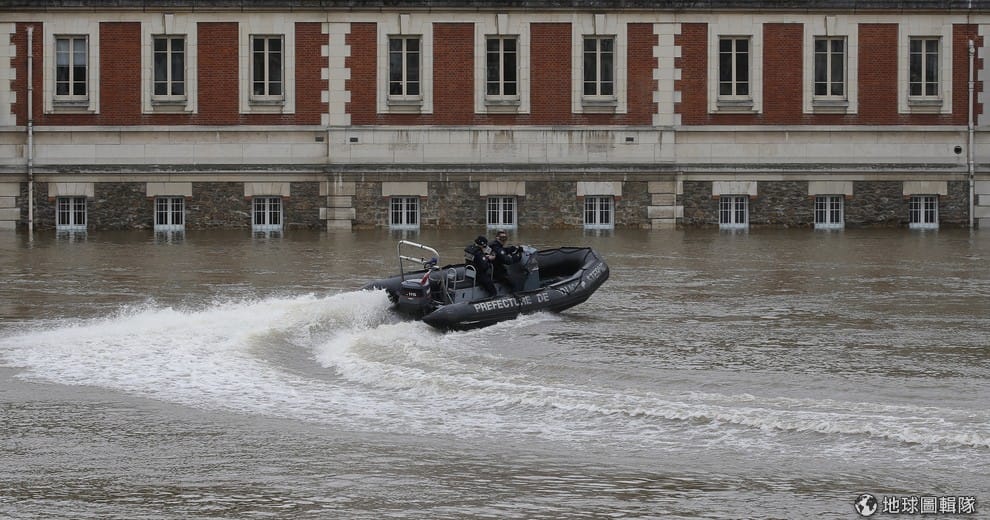 連日大雨讓塞納河附近的建築遭河水淹過,