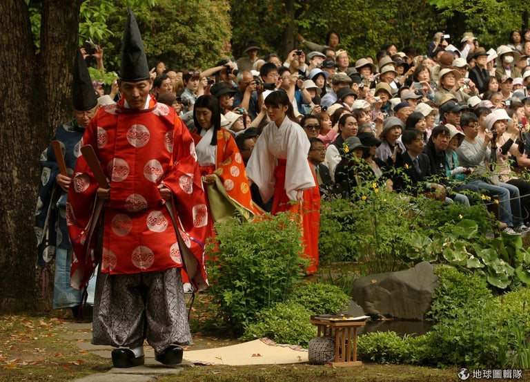 今年的4/29日,城南宮舉辦了曲水之宴。照片中的女子正要端起酒杯。Buddhika Weerasinghe/Getty Images