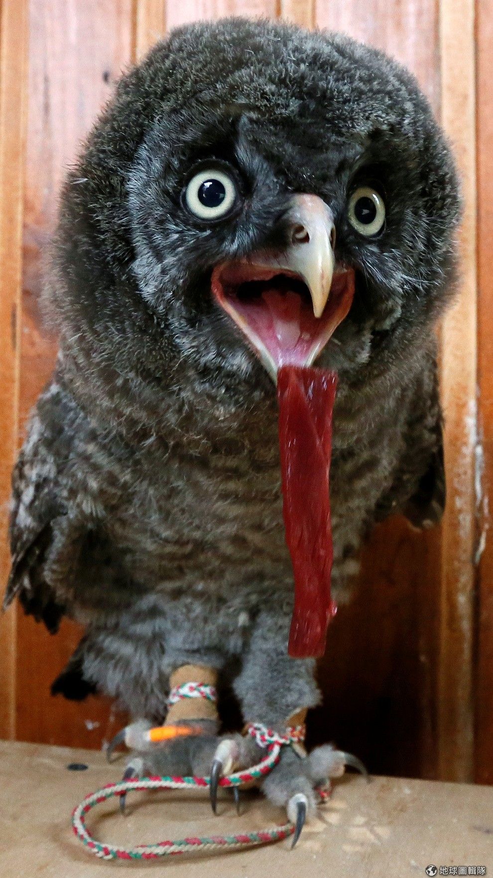 西伯利亞偏鄉克拉斯諾亞爾斯克(Krasnoyarsk)當地, 羅伊孚露奇動物園(Royev Ruchey zoo)可見 3週大的烏林鴞正在享用鮮肉。