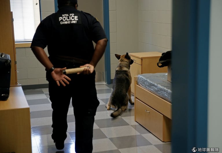 紐約斯托姆維爾當地,大眾交通警察局的警犬訓練中心內,可見員警華爾頓(Jason Wharton)往在眼前坐下的德國牧羊犬Mikey走去,坐下的牠表示找到了藏有炸彈的地方。華爾頓與其他中心內的員警正在訓練能協助找出炸彈的警犬。