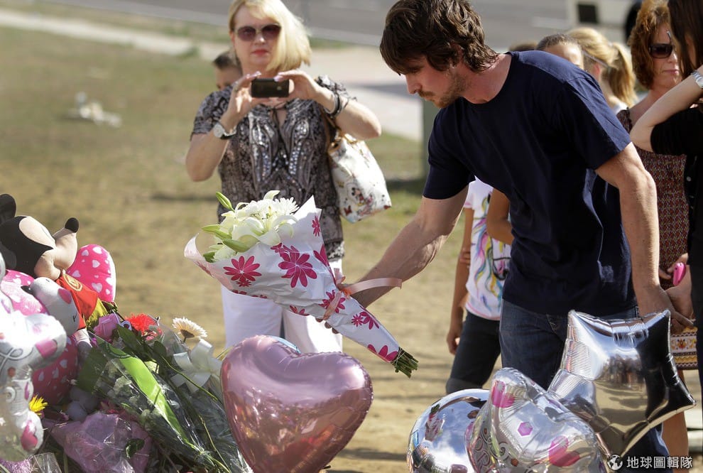 去年7月的槍案震驚全球,因為當時發生地點就是電影《黑暗騎士:黎明升起》首映會,槍案發生後,電影男主角克里斯汀貝爾(Christian Bale)也到場向罹難者致意。Joshua Lott/Getty Images