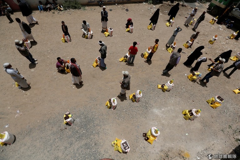 慶祝齋戒月開跑第一周,人們在禱告開始前聚在一起拍照。