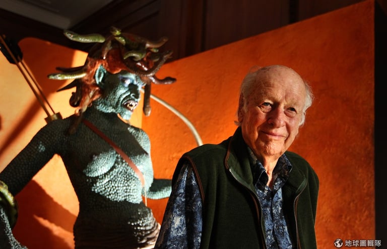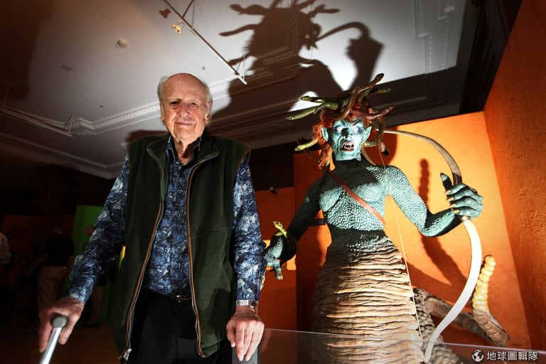 打小就愛史前動物的哈利豪森,最愛自己用陶土一點一點捏出腦海中的神奇巨獸,或許也因如此,磨練出他對特效的熱愛和創意;過去他有名的特效作品中,最讓人津津樂道的就屬1963年的《傑森王子戰群妖》(Jason and the Argonauts),影片中骷髏士兵破土而出的畫面,實際上卻是他一格一格拍出的心血結晶,短短3分鐘的影片卻花了他整整3個月的時間!另一部經典作品《諸神之戰》(Clash of the Titans),影片出現的梅杜莎女妖,也成為家喻戶曉的人物,這部電影也在之後重拍成2010年上映的《超世紀封神榜》。Peter Macdiarmid/Getty Images