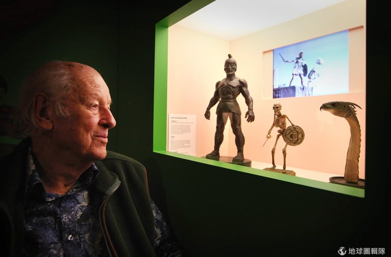 為了感念他在電影工業上的貢獻,英國的倫敦電影博物館(The London Film Museum)也展出了他的作品。照片中就是他當年在《諸神之戰》電影中用到的拍攝道具。Peter Macdiarmid/Getty Images