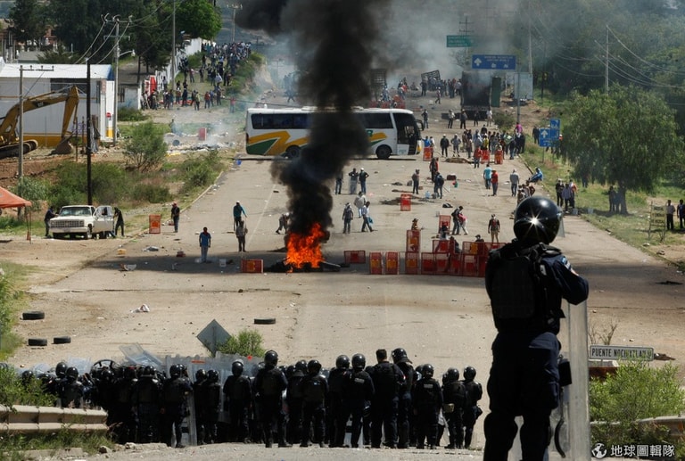 週日(19)時,瓦哈卡州(Oaxaca)一處高速公路發生嚴重警民衝突,鎮暴警察想驅趕佔據道路作為抗議手段的教師工會「國家教育協調會」(CNTE)成員,結果雙方發生嚴重衝突,現場可見火光黑煙四起。