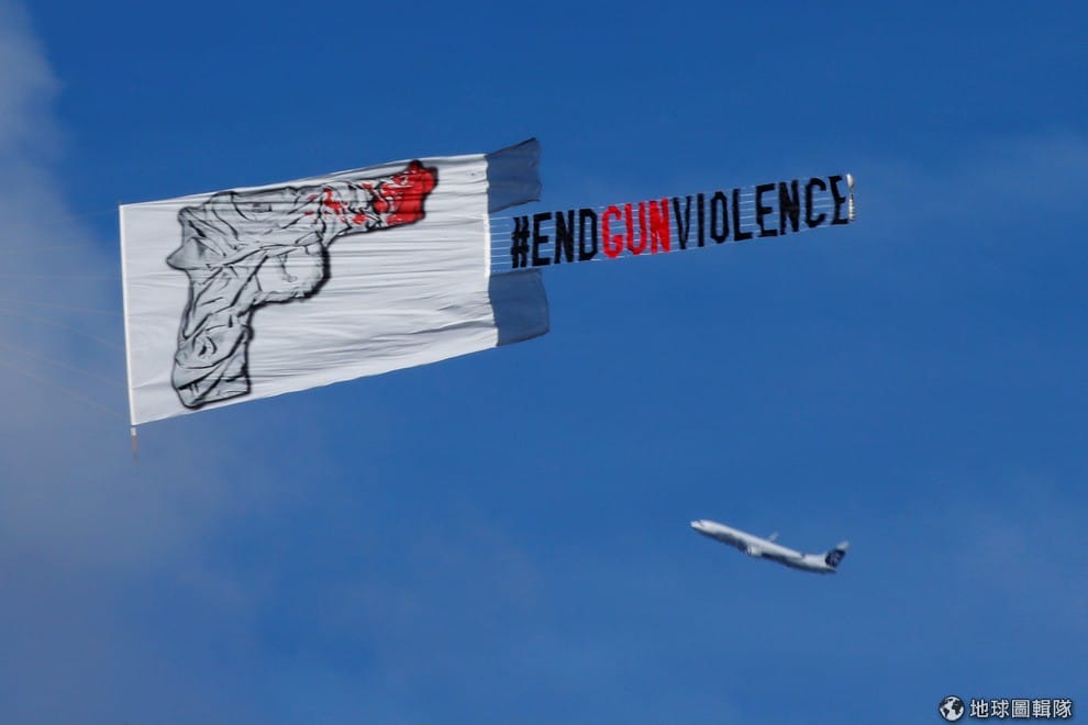 19號這天,美國佛羅里達州奧蘭多市的天空出現大型旗幟,上面畫了一把染血的手槍和「停止槍枝暴力」(#End Gun Violence)的字樣,以此來紀念在奧蘭多夜店槍擊案中喪生的受害者,也呼籲民眾支持槍枝管制,不要再讓憾事發生。