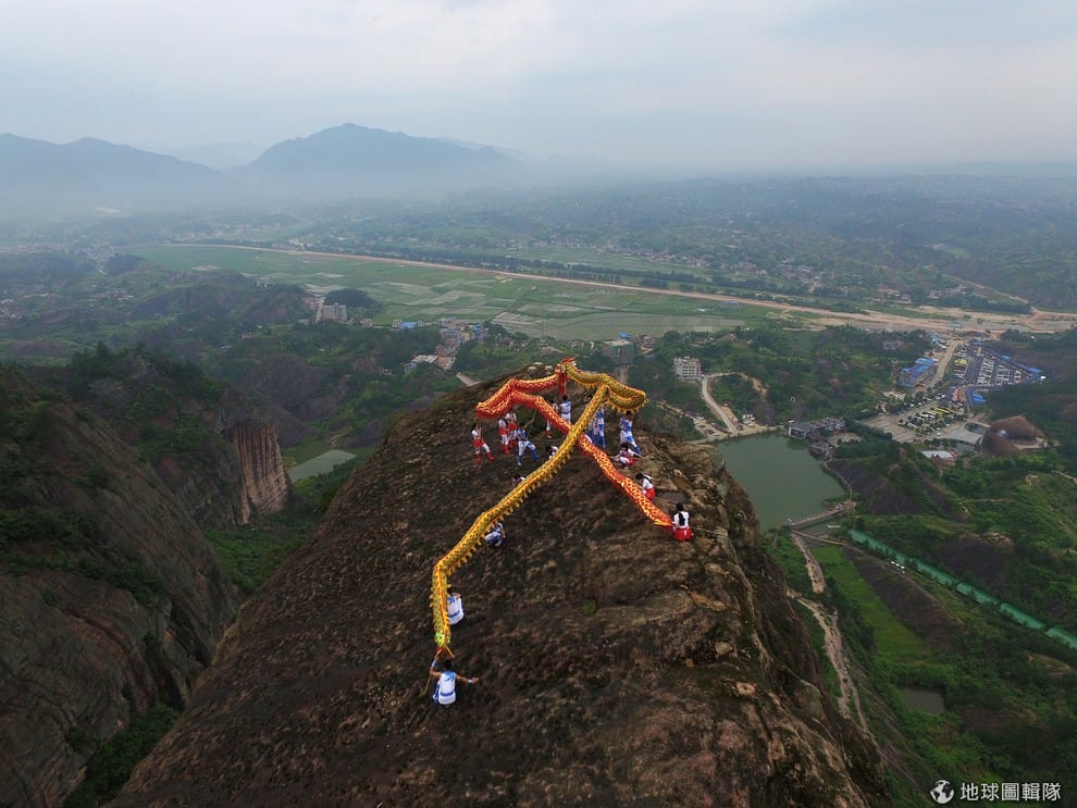 每年六月的第三個星期天是中國的父親節,為了慶祝這個偉大的日子,中國舞龍隊爬上湖南省岳陽市的高山,用龍身排出「父」字,從高空俯瞰十分吸睛。