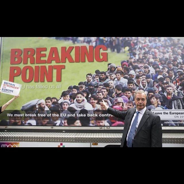 其實,在公投前就已經能見到排外的情緒與英國脫歐越走越近,英國極右派政黨英國獨立黨(UKIP),在宣傳脫歐(Leave)時使用了讓人聯想到納粹的海報內容,海報上可見成群排隊的移民,一旁的標語寫著「該是時候(該分開了,Breaking Point)」。