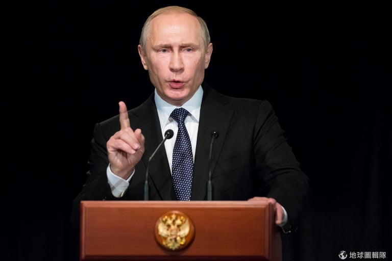 俄國總統普亭(Vladimir Putin)對著台下的學生演講。