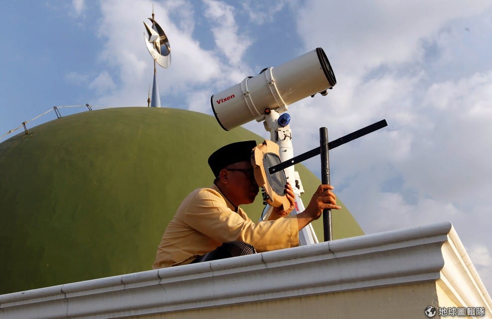 雅加達市內一處清真寺,穆斯林正專心觀察月亮的位置,這天過後就是伊斯蘭信仰中重要的開齋節(Eid al-fitr)。