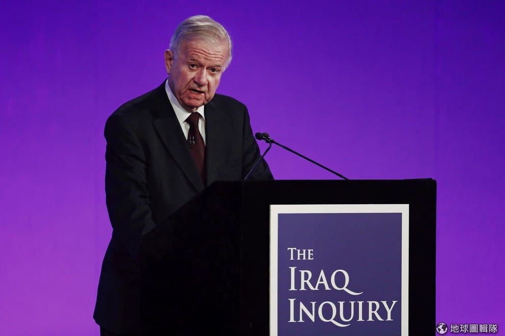 圖為帶領獨立調查委員會的齊爾考特爵士,他在 6號這天公布調查報告,指出英國當年基於錯誤情報出兵伊拉克。