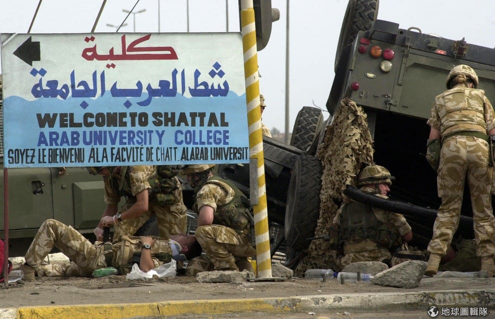 圖為當時在伊拉克戰爭中遭到攻擊的英國軍人,總計共有 179名英軍在伊拉克戰爭中喪生。