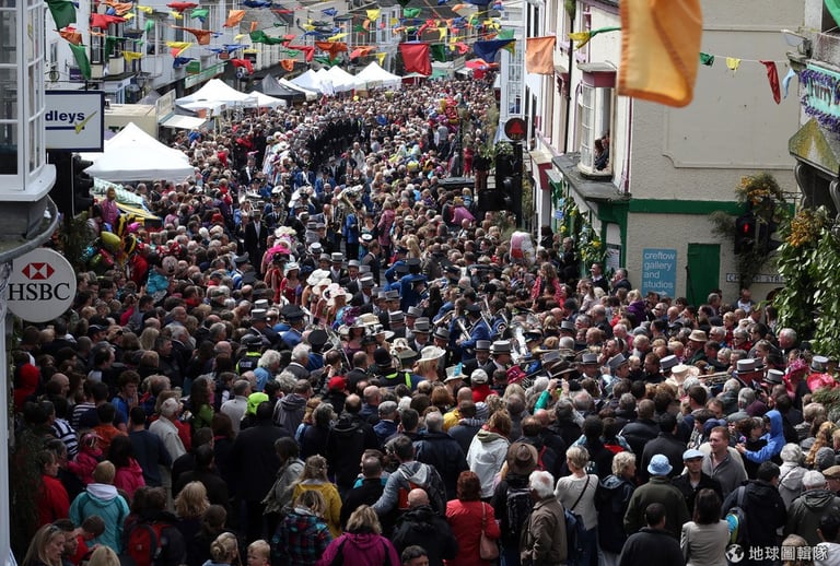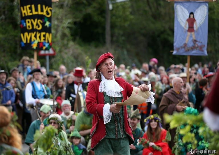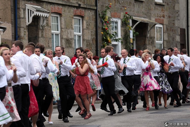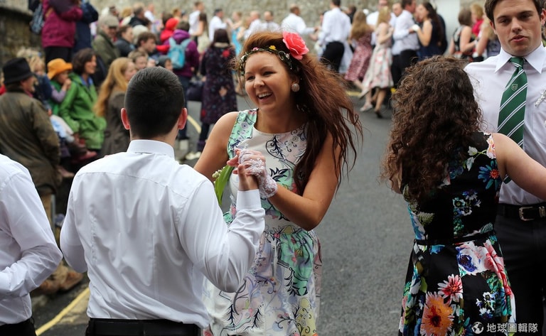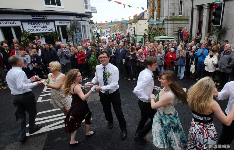 每年5月8號,英格蘭的赫爾斯頓(Helston)小鎮就會舉辦有百年歷史的「花神祭」(Floral Day)歡慶春天到來,約莫80對的男男女女會手牽手在鎮上優雅跳起「五月花舞」(Furry Dance),他們還會跳進一些店家,來替老闆去霉運、迎好運!