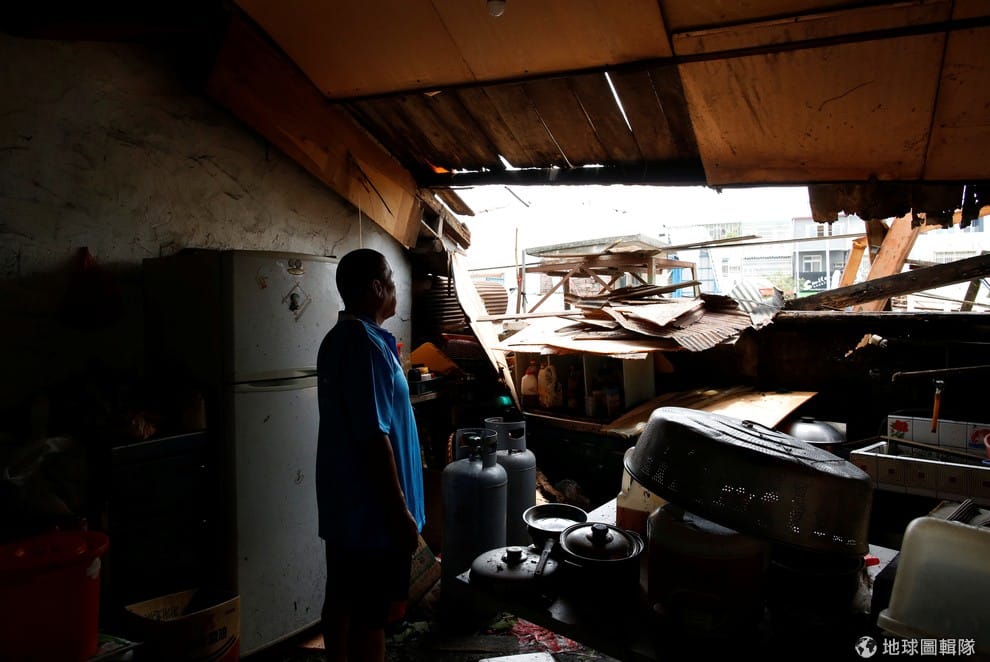 尼伯特颱風重創台東,一位民眾站在自家屋內看著破損的屋頂。報導指出,,根據縣府統計,尼伯特颱風讓農損達超過 6億,台東縣包括房屋、招牌、公有廳舍、機關學校、商家、路樹等,損失更是超過 20億。縣府透過「台東不一樣」臉書粉絲專頁,希望民眾透過捐輸,或到災區當志工,幫助台東重建。