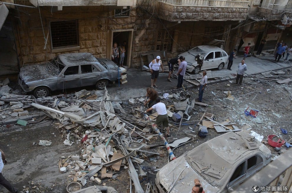 政府軍控制的阿勒坡市區內一片混亂,這裡剛受到反政府軍陣營的攻擊。