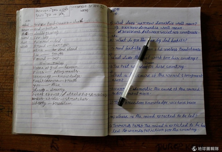 14歲的沙帕(Sagar Thapa)說:「我以前看到他,會覺得這樣一個老人家跟我們一起上學做什麼,但現在隨著時間過去,我喜歡有他在旁的日子。」 「跟我們比,他(卡米)的功課不太好,不過我們會幫他。」