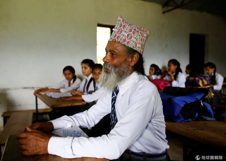 每天,當卡米爺爺從漏水又孤單的家一踏進施利卡拉巴伊萊布高中(Shree Kala Bhairab higher secondary school)時,迎面而來那 200多位學生的吵鬧聲是一種心靈上的安慰。