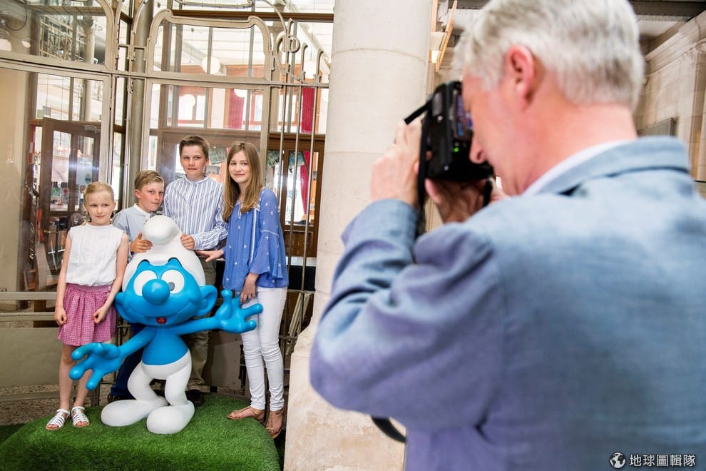 首圖故事:比利時國王為兒女掌鏡,拍下他們與比利時漫畫人物藍色小精靈的合影...