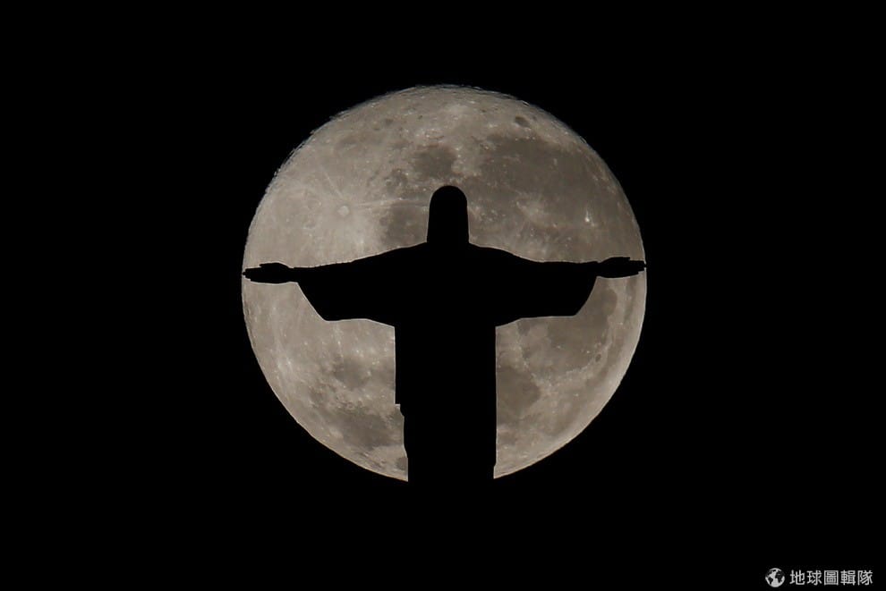 位於里約熱內盧的基督聖像(Christ The Redeemer)張開雙臂,與身後的滿月相得益彰。