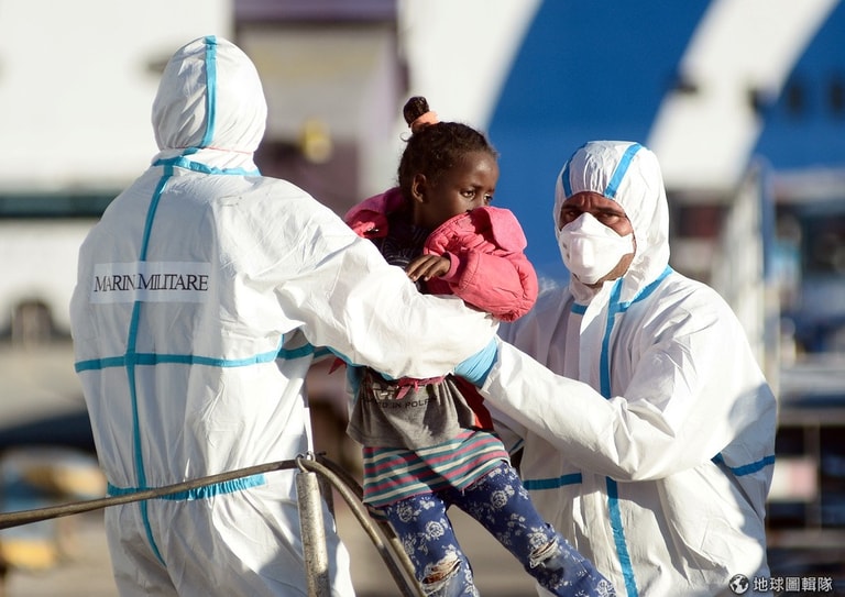 在南部西西里島的巴勒摩港,來自北非的難民被救援船救上岸,這些難民剛剛搭著救援船抵達港口,他們為了逃離戰亂的家園,決定賭一把冒險搭乘橡皮艇橫越地中海,許多人不幸葬生海底。