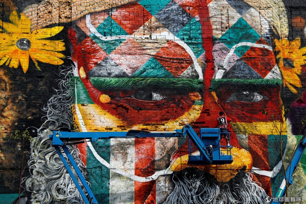 為了歡迎來自世界各地的遊客,巴西藝術家柯布拉(Eduardo Kobra)在里約熱內盧一面佔了 3,000平方公尺的牆,畫上了來自全球五大洲原住民的臉。