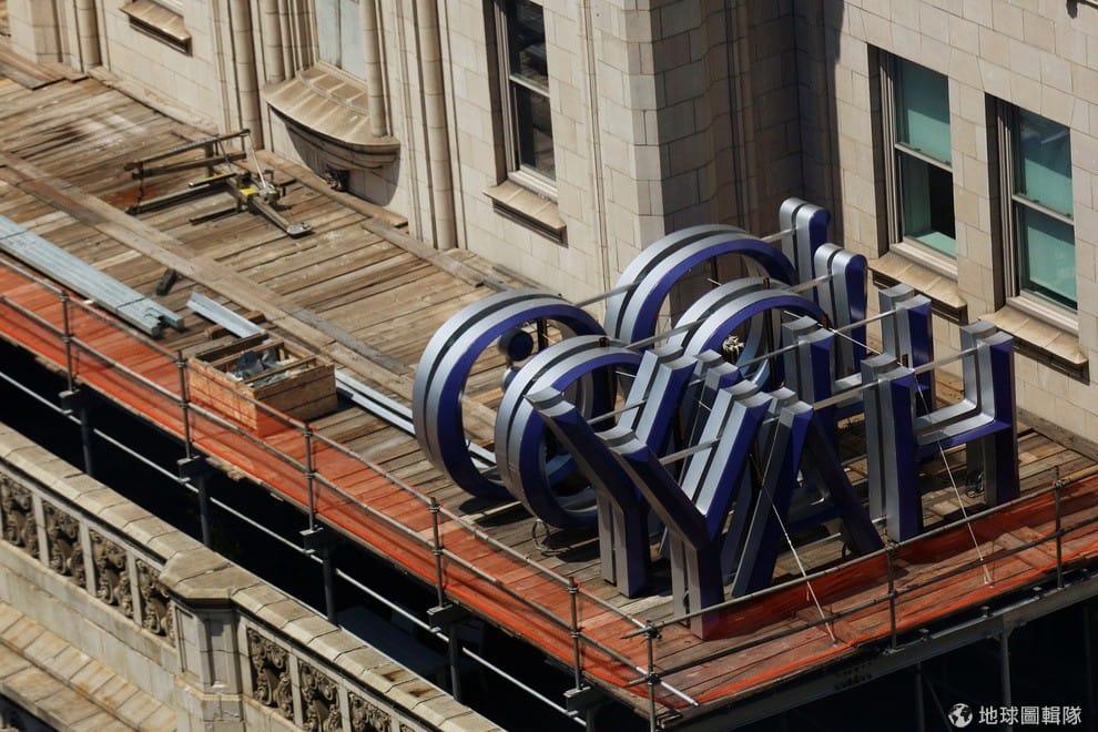 科技巨人Yahoo公司的標誌,被放在紐約辦公室的頂樓。