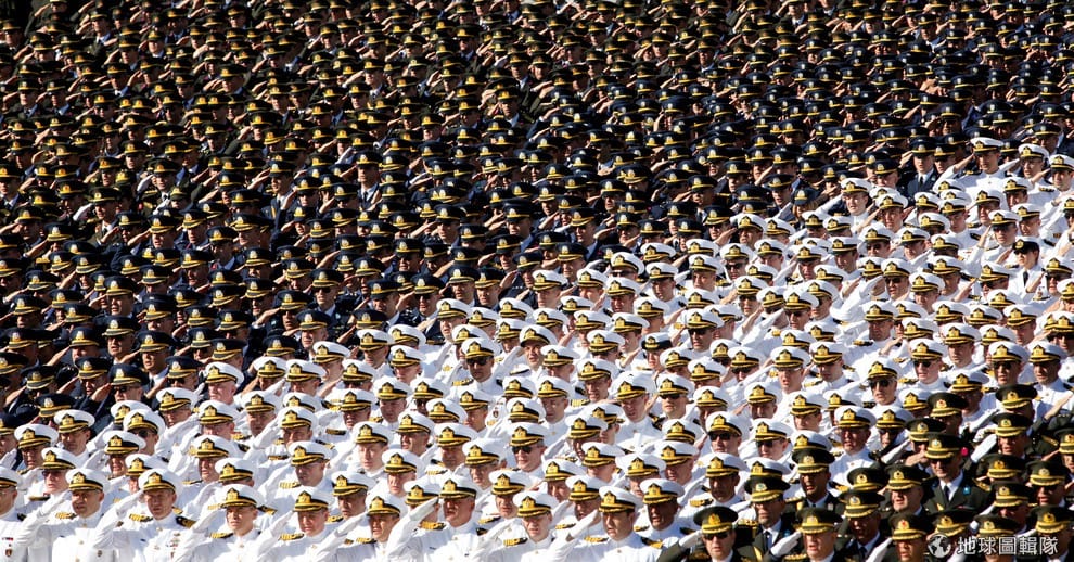 一群軍人朝著土耳其國父凱末爾(Mustafa Kemal Atatürk)的陵墓敬禮,紀念土耳其在獨立戰爭中取勝。