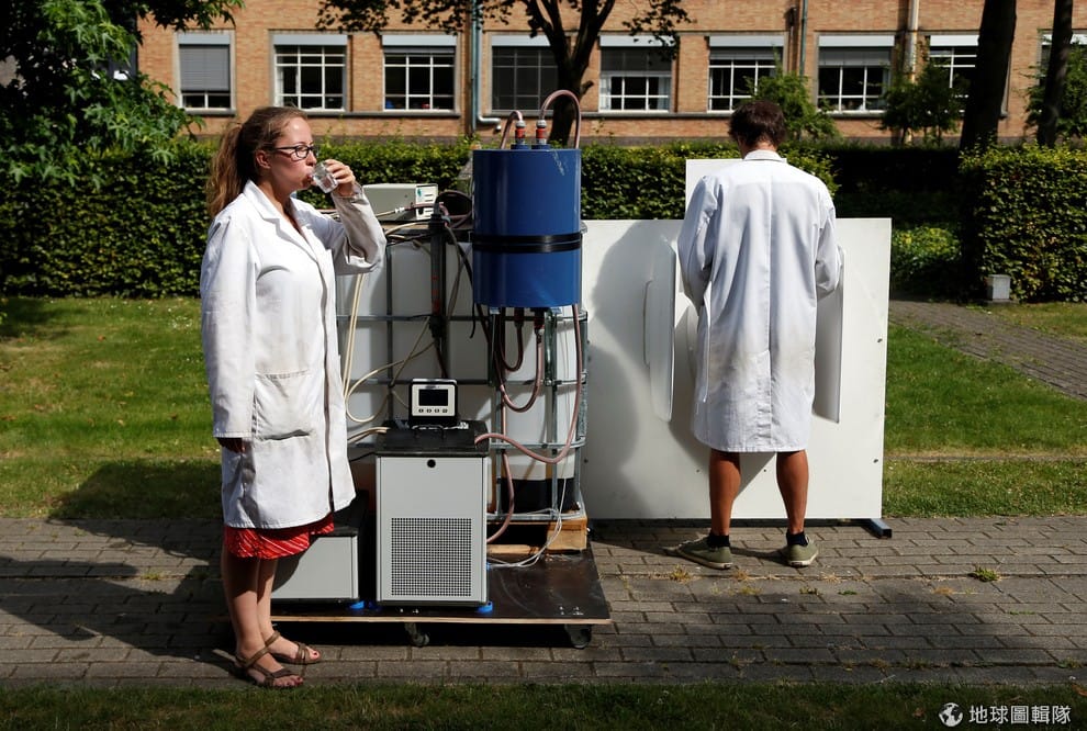 26號這天,兩名來自比利時根特大學的科學家,對著鏡頭示範如何把尿液變成飲用水,並當場喝下處理過的水。此外,這台神奇的機器完全利用太陽能運作,還可以製作肥料,吸引科學界的關注。