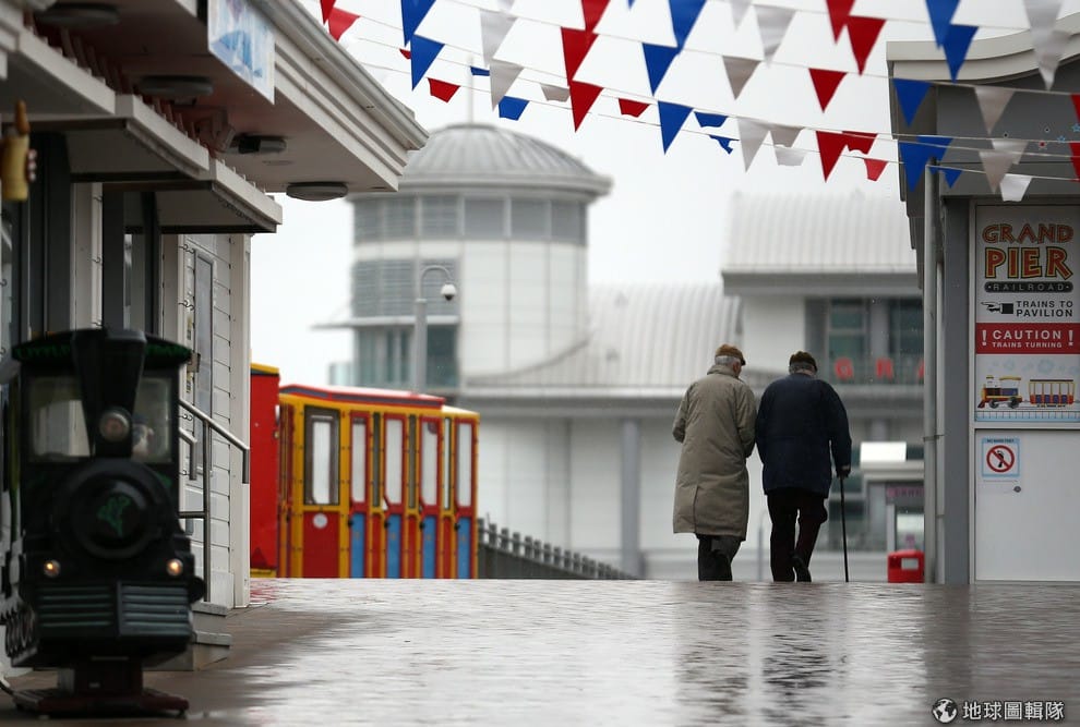 早就進入春天的英國,現在卻是被低溫濕冷外加雪花圍繞的怪氣候籠罩。當地WESTON-SUPER-MARE有名的海水浴場,現在是全無客人上門的狀態,店家也只能關門暫停營業。Matt Cardy/Getty Images