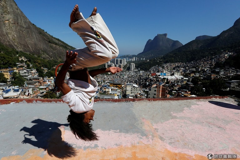 一名巴西戰舞卡波耶拉(Capoeira)的表演者在貧民窟練習。
