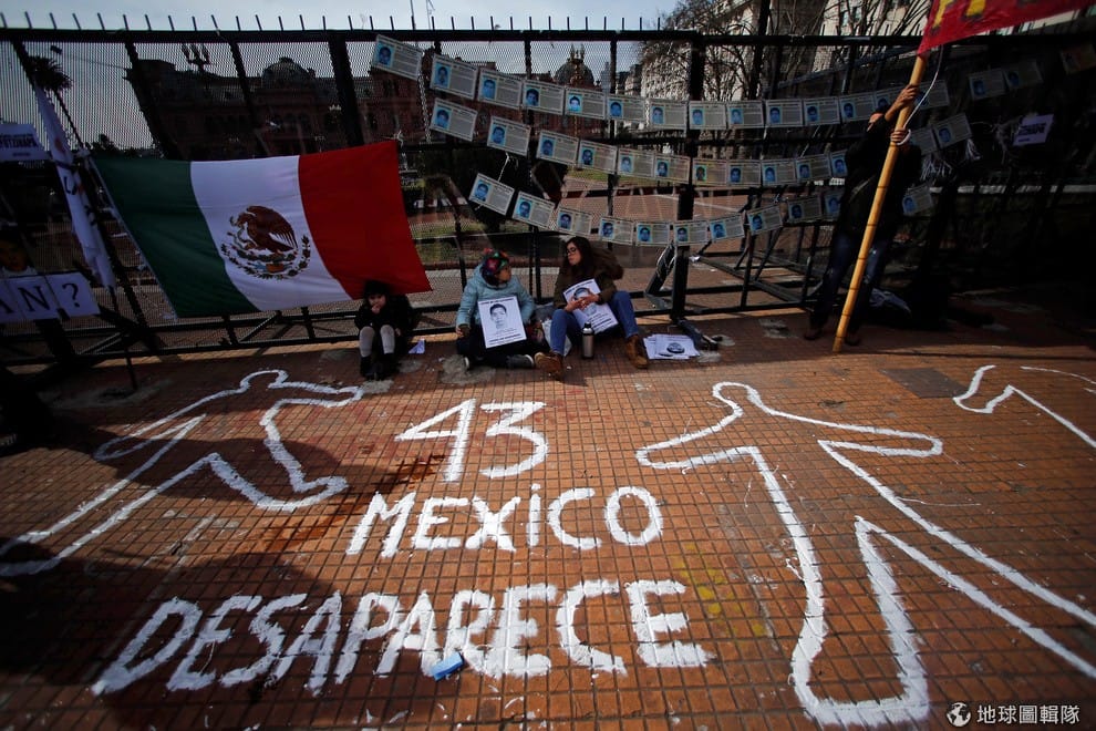 29號這天,抗議 43名墨西哥學生遭殺害的民眾,得知墨西哥總統涅托(Enrique Pena Nieto)出訪阿根廷的消息,特地來到總統府前示威。只見地上用白色油漆勾勒出人形,一旁寫著「43墨西哥消失」的字樣,護欄上掛著失蹤的 43名學生照片。