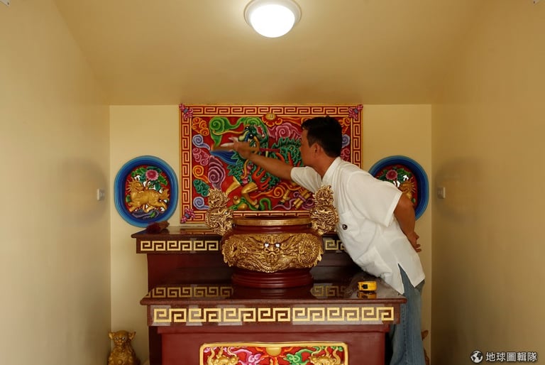 「對於那些想要小廟來拜的客戶來說,這很符合他們的需求啦。」近乎半個世紀的歲月,林復準都投入在建廟這塊,早先他還有參與寺廟上龍鳳神明雕像的製作,但現在都是雇人來做了。