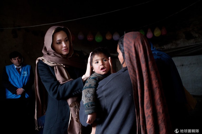 12年前,裘莉捐出100萬美金給聯合國難民署獲得讚揚。她在2001那年也開始擔任聯合國外交特使,多年來她行善不遺餘力。照片中是2011年,裘莉再度來到喀布爾訪視35歲的辜爾和她的小兒子薩摩,裘莉上次探訪她們時,薩摩還是個14天大的小嬰兒。這對母子以及其他從外國回到喀布爾的居民,正處在無法融入當地、缺乏工作機會的窘境。Jason Tanner/UNHCR via Getty Images
