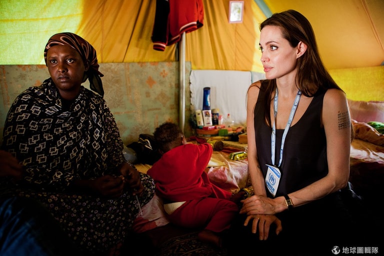 編註:照片中是2011年的突尼西亞,當時裘莉探訪從利比亞逃出的難民。