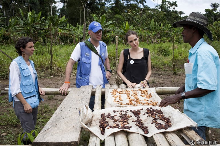 編註:照片中是2012年的厄瓜多,裘莉正在探訪聯合國資助的厄瓜多咖啡農,聯合國幫助這些居民可以養活自己並讓居民們有足夠的營養。 J Tanner/UNHCR via Getty Images