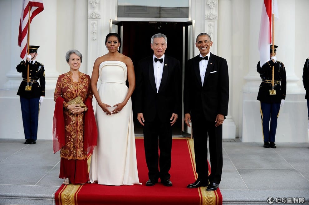 新加坡總理李顯龍(右2)夫妻拜訪美國,與美國總統歐巴馬(Barack Obama)一同慶祝美國新加坡建交 50週年。報導指出,歐巴馬希望藉由李顯龍訪美,再度推動遭到外界激烈反對的跨太平洋夥伴協定(TPP),白宮大力支持的TPP被視為歐巴馬「重返亞洲」政策的重要環節,但共和與民主兩黨的總統參選人川普(Donald Trump)和希拉蕊(Hillary Clinton)都已表態反對。