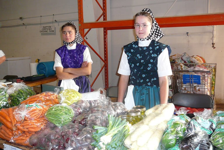 阿米希社會中,多數男性都頭戴寬邊草帽,穿吊帶長褲。女性穿單色長裙外加圍巾,頭上則戴無邊白色小帽。
