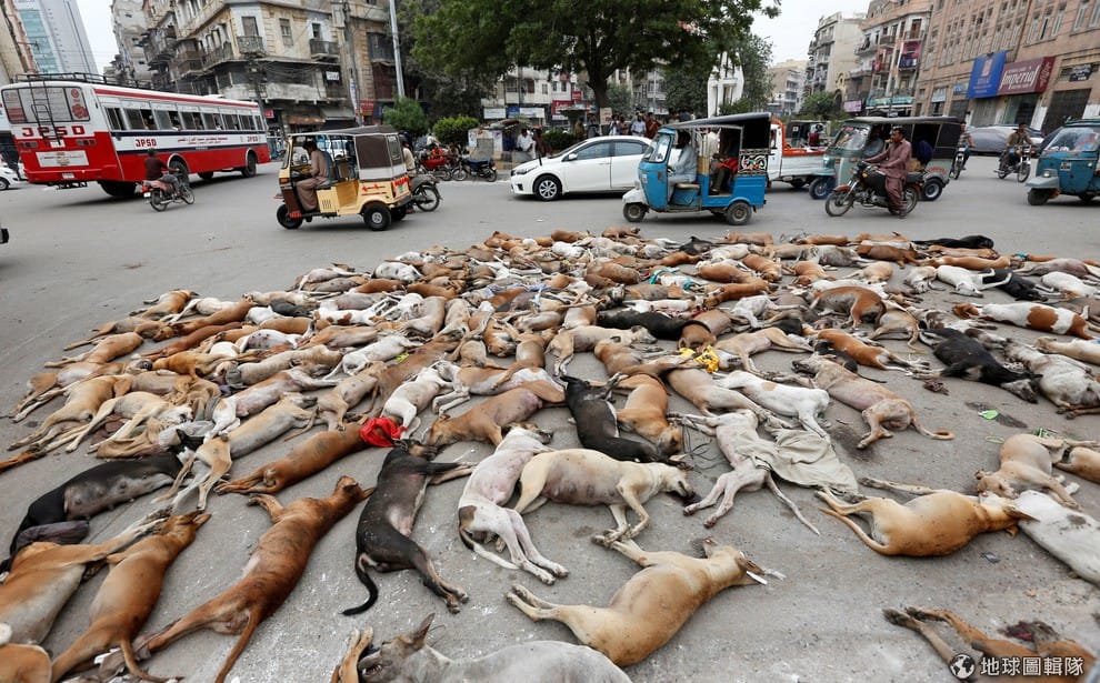 喀拉蚩市內,當地政府大量撲殺狗,市區可見狗屍橫陳在街頭。