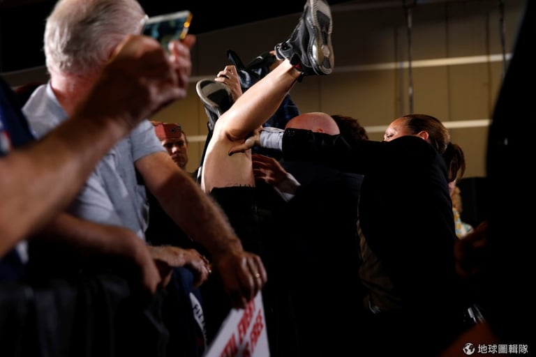 美國總統候選人希拉蕊(Hillary Clinton)致詞活動中,一名到場示威的動保人士被保鑣架出場外。