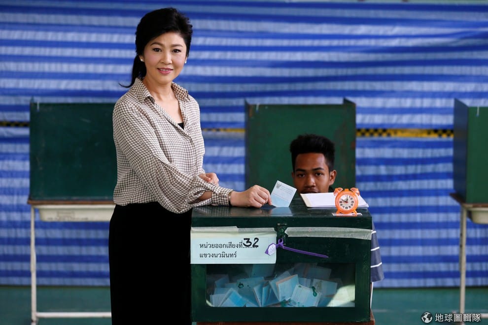 泰國前總理盈拉在 2014年軍事政變後被判涉嫌濫權必須下台 ,她也出席了投票活動。